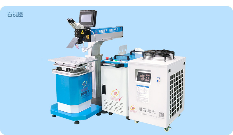 采用光纖激光器,反射率高,能量強,免維護,免調光,功耗少,相比傳統 模具焊來說,體積小,安全,穩定性好超長使用壽命。 1000W光纖激光器,滿足銅、鋁焊接量大的模具及產品焊接加工需要。 高承重底座及工作臺,保持輕便靈活的優點,同時提供更高承載能力。 配備.1.5P大功率一體式水冷水機,保證了大功率焊接的穩定性。